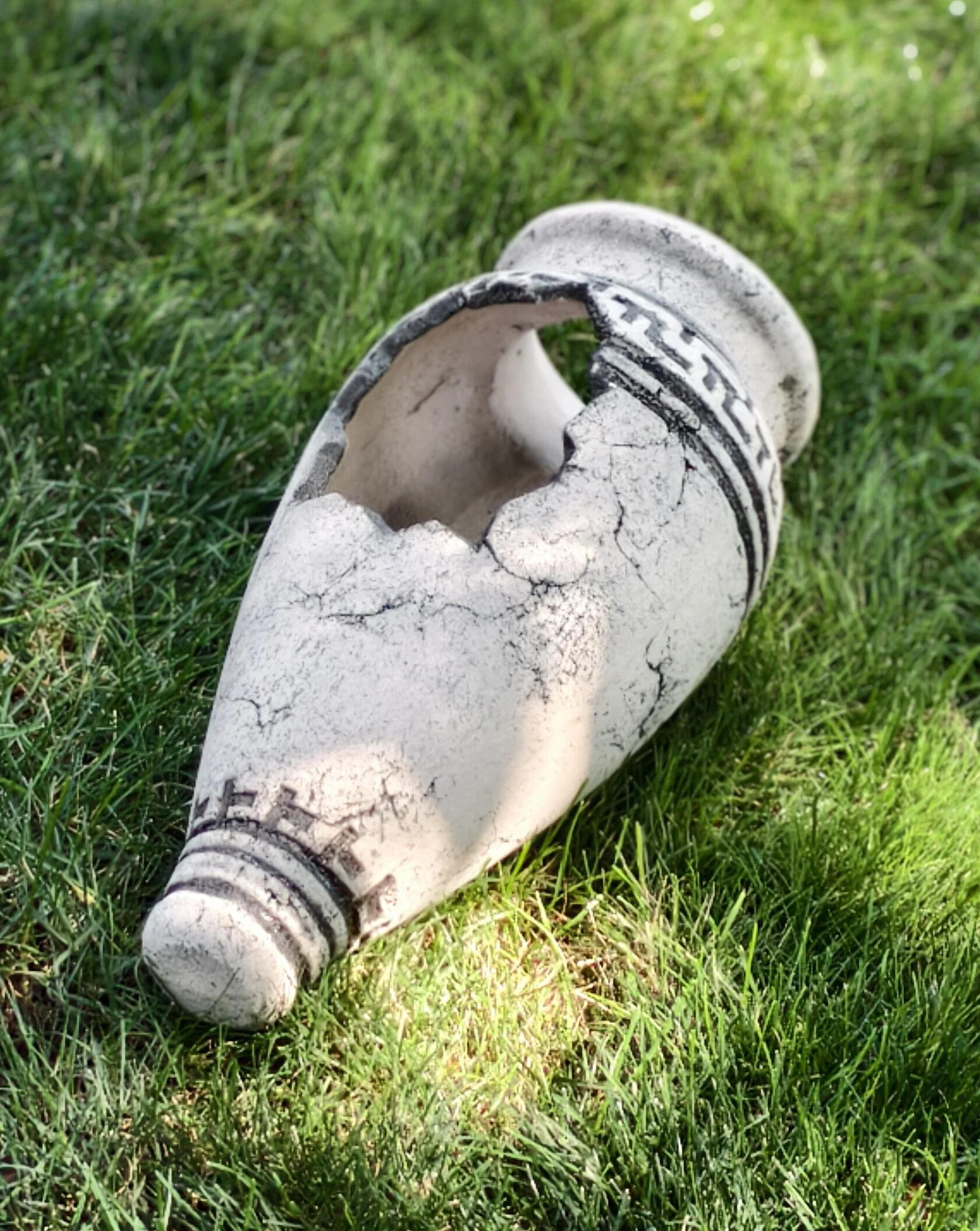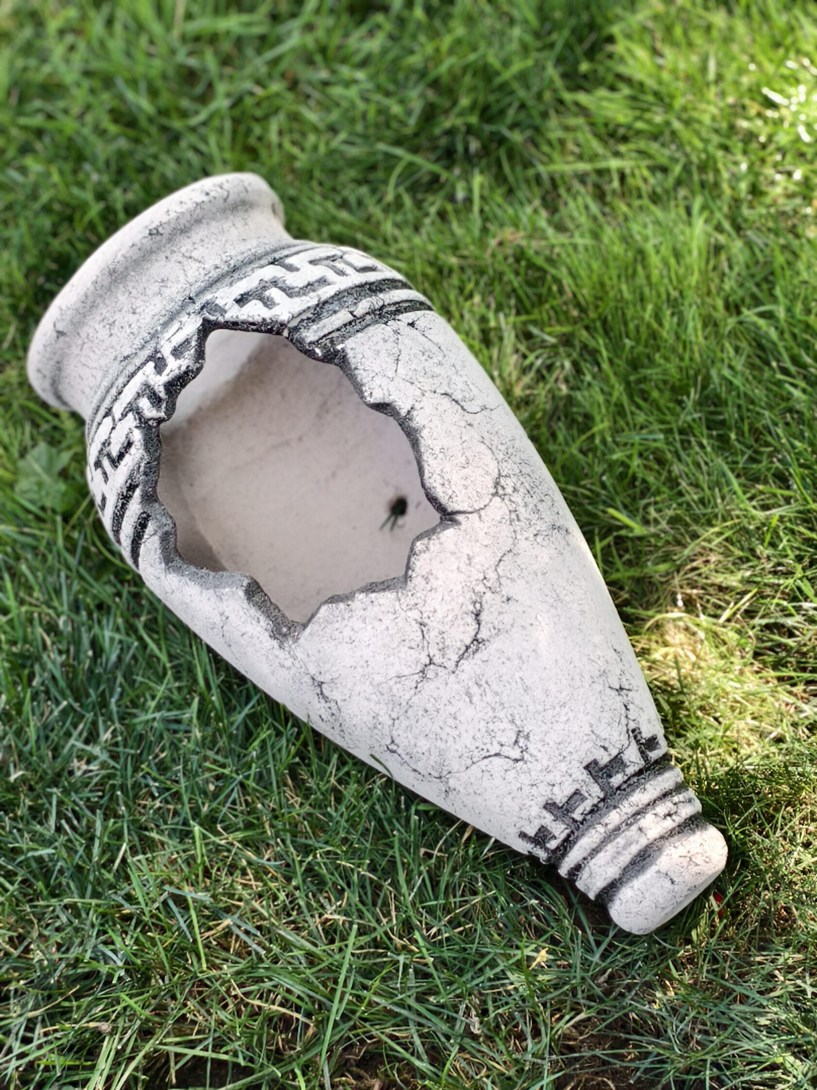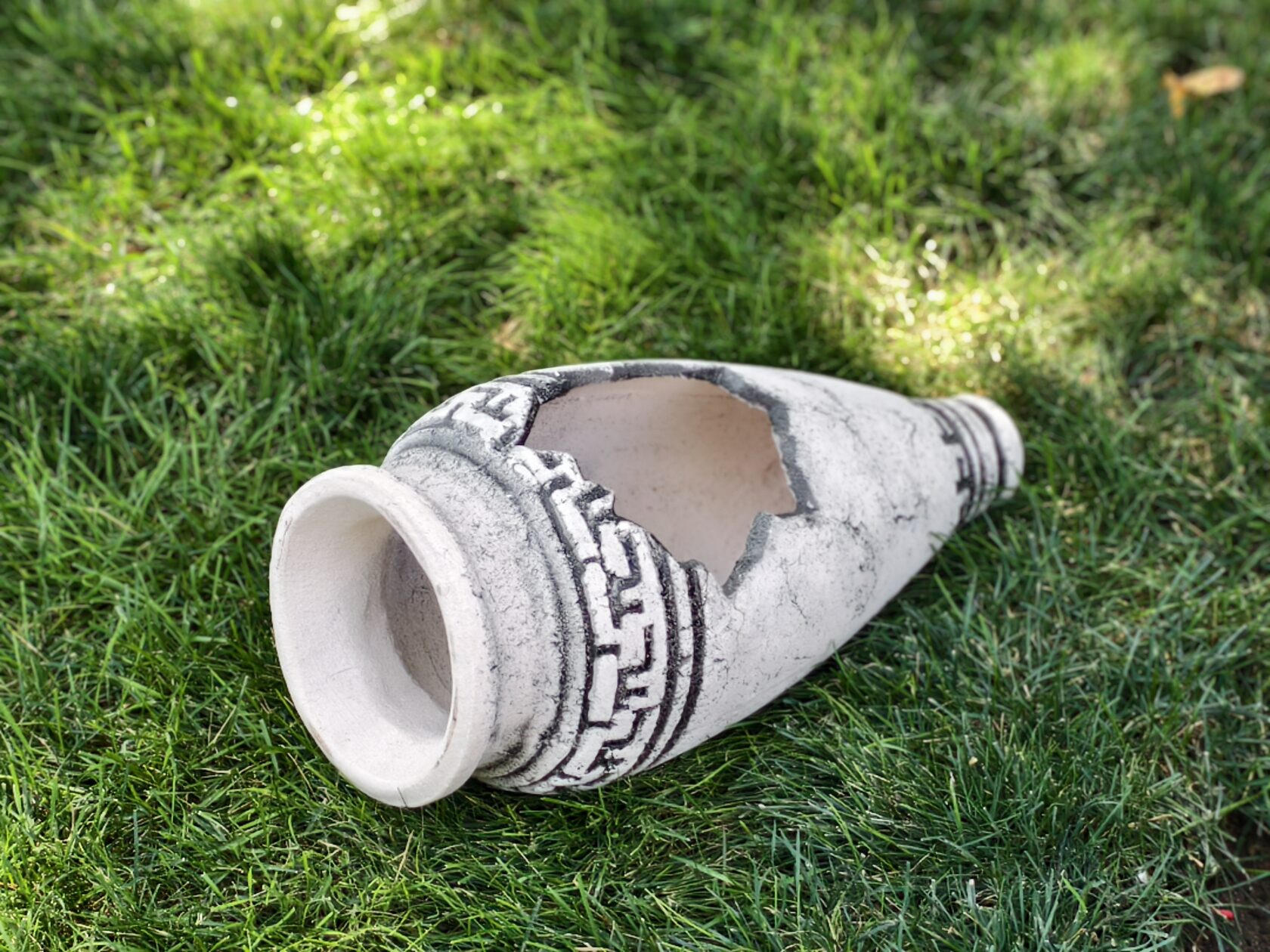 Декоративна керамическая амфора, созданная из натуральной шамотной глины, сочетающая древнюю технику лепки с современными элементами декора.