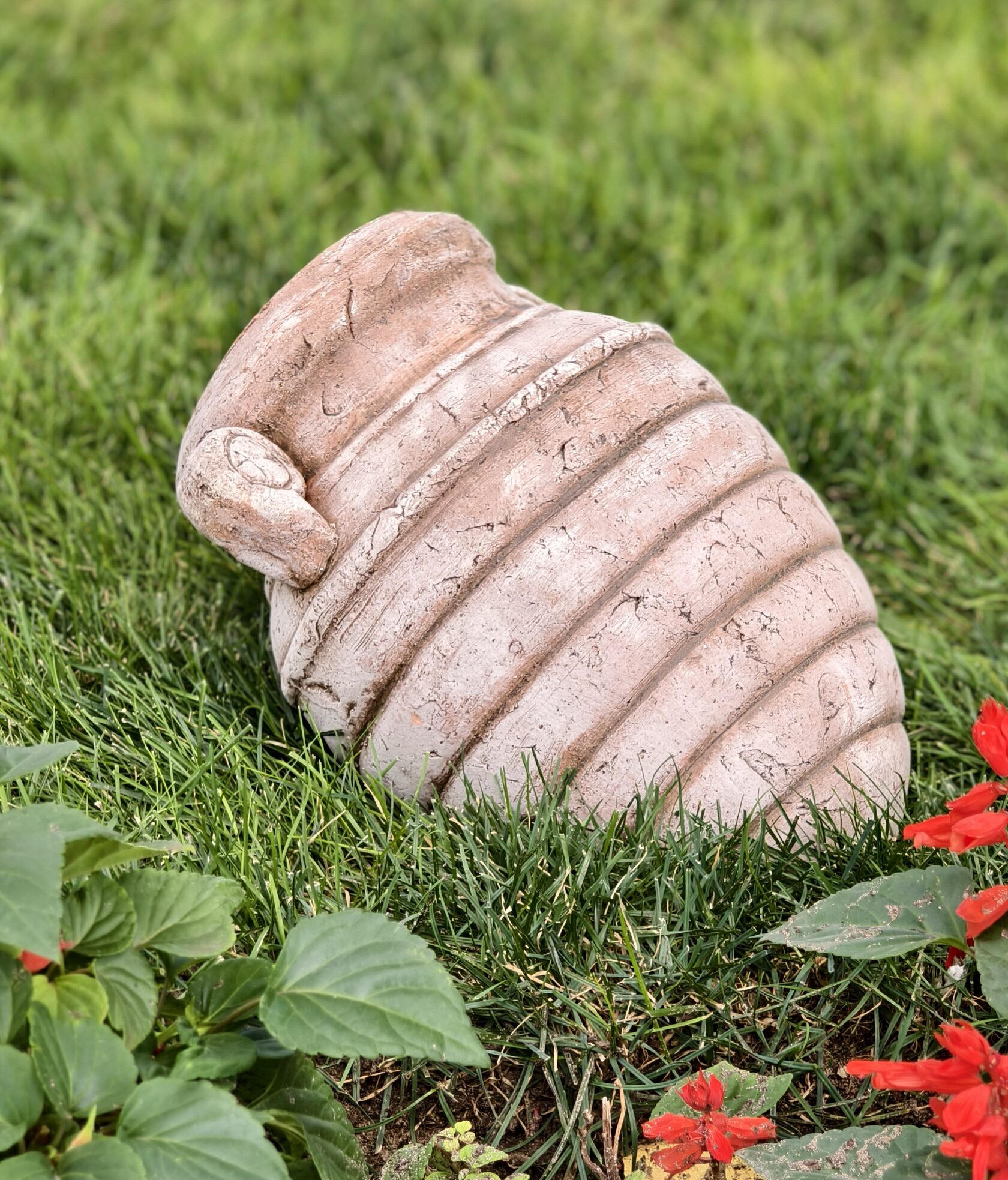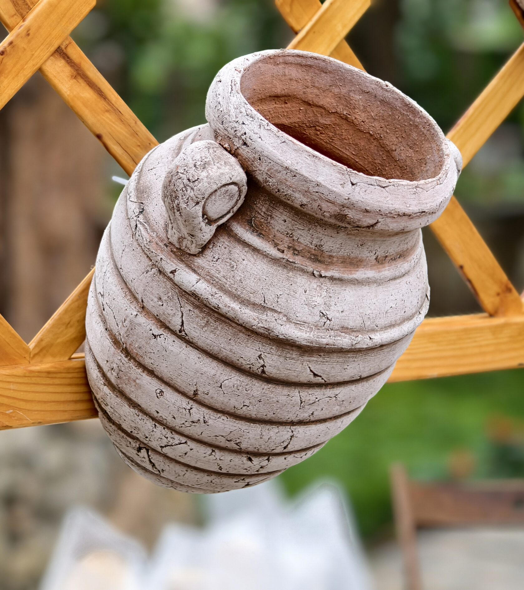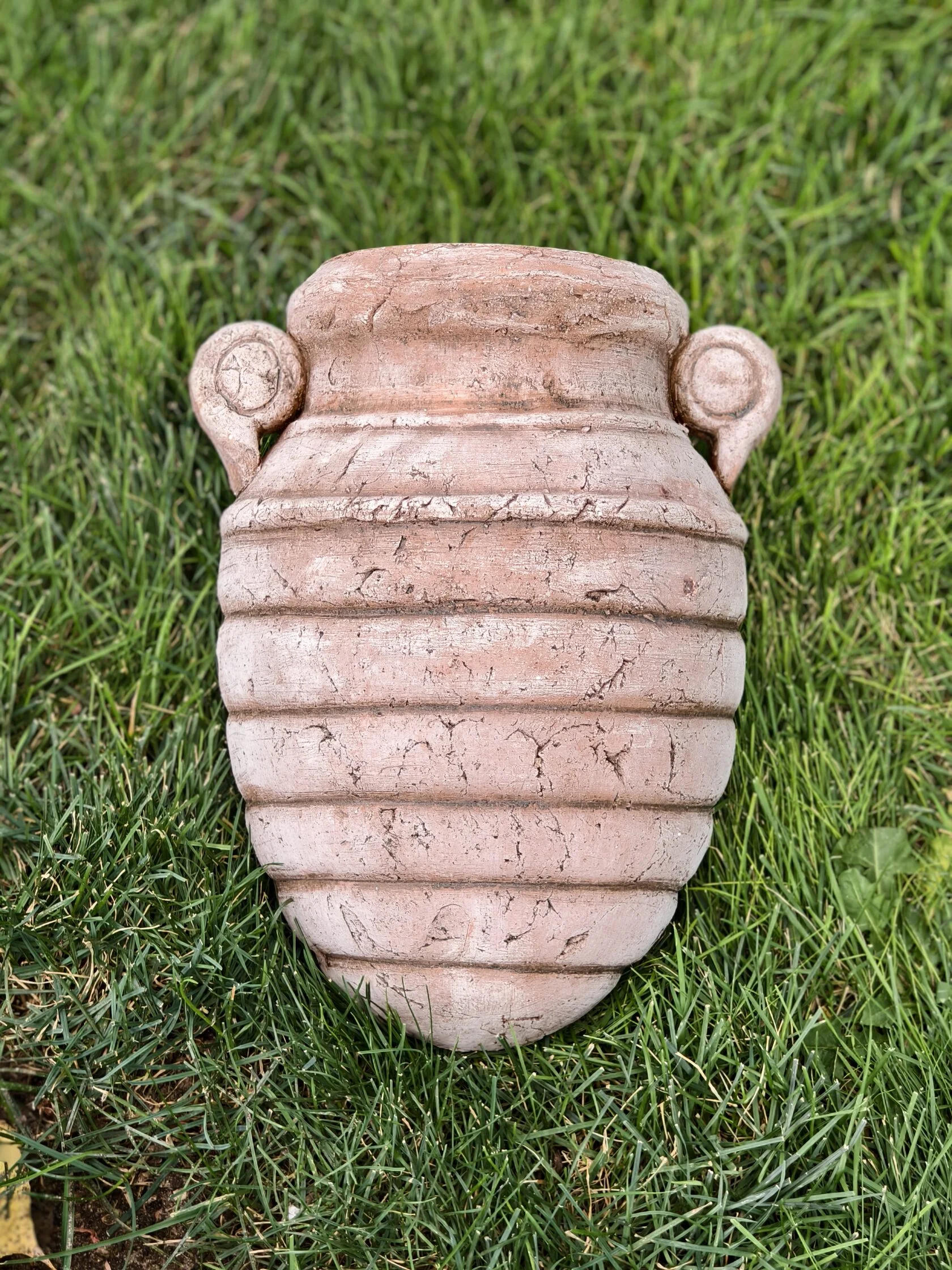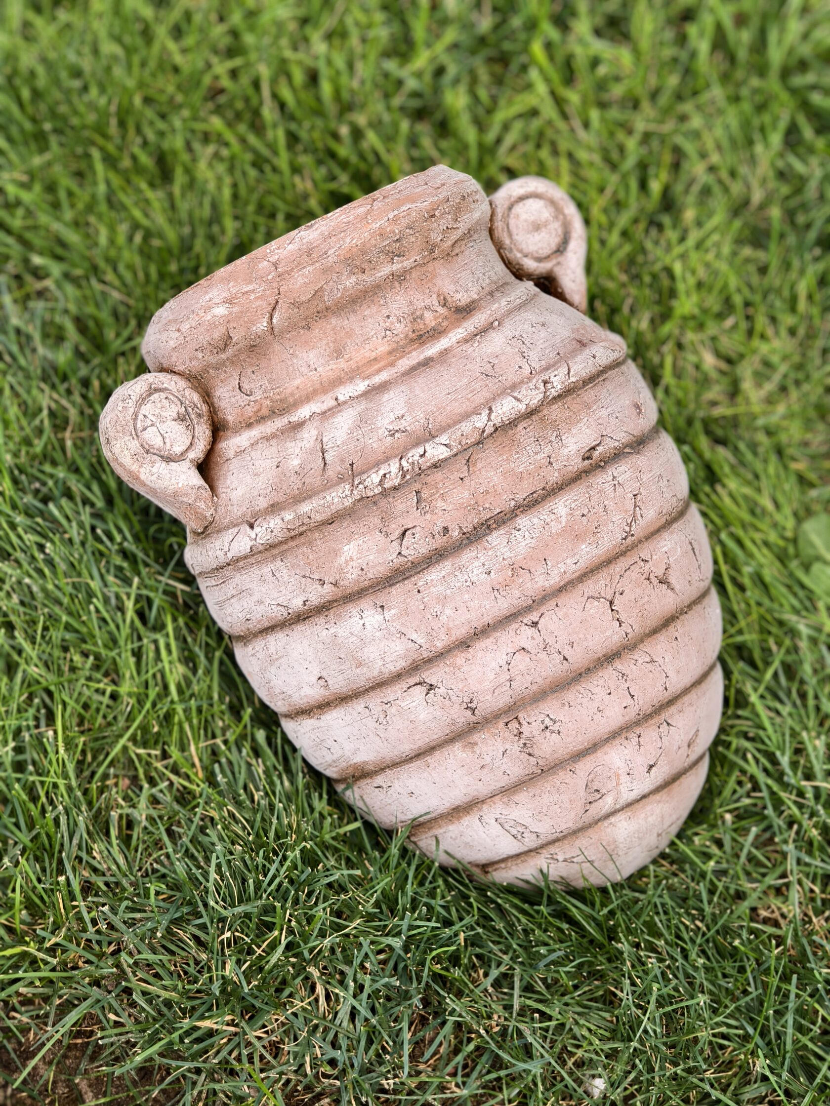 Керамическая амфора «Улей» с принтом светлая патина — это изысканный элемент декора, который привнесет нотку элегантности и природной простоты в дизайн сада или интерьера.