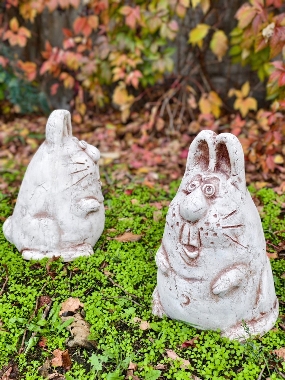 Статуэтки зайцев прекрасно смотрятся возле клумб, деревьев или водоёмов, оживляя пространство и привлекая внимание гостей.