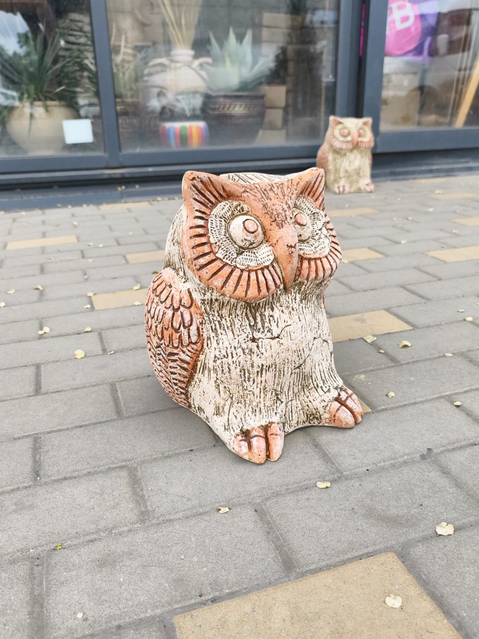 Это уникальное произведение выполнено из натурального шамотного материала. Шамот отличается высокой прочностью и долговечностью, что позволяет использовать данную скульптуру как внутри помещения, так и на свежем воздухе. Прекрасно дополнит оформление интерьера любого жилища или придаст оригинальный стиль Вашему саду.